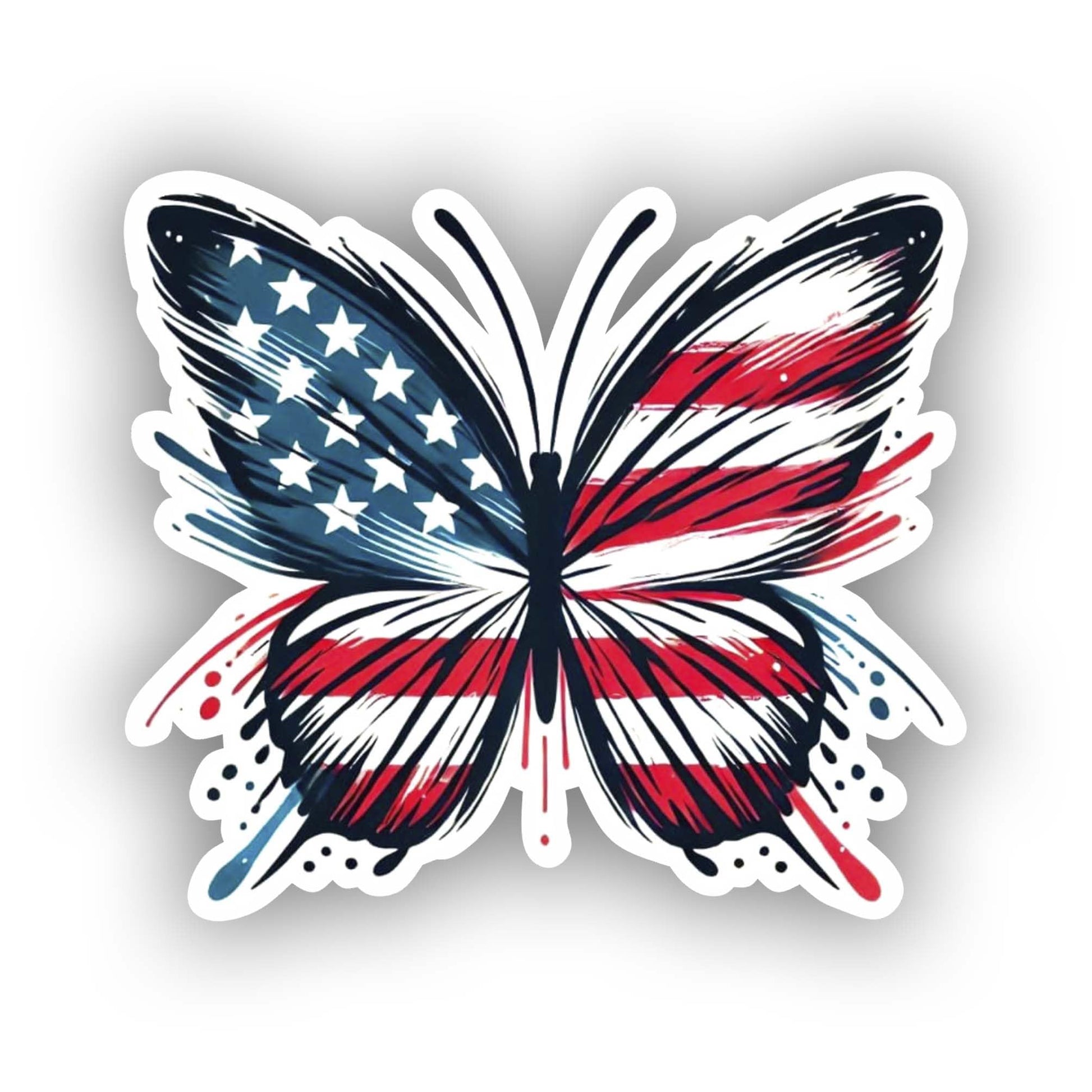 Abstract American Flag Butterfly Sticker - Artistic USA Decal for Laptop, Wall, Car, Window, Bumper, Truck, Waterproof Vinyl for Water Bottle and Auto