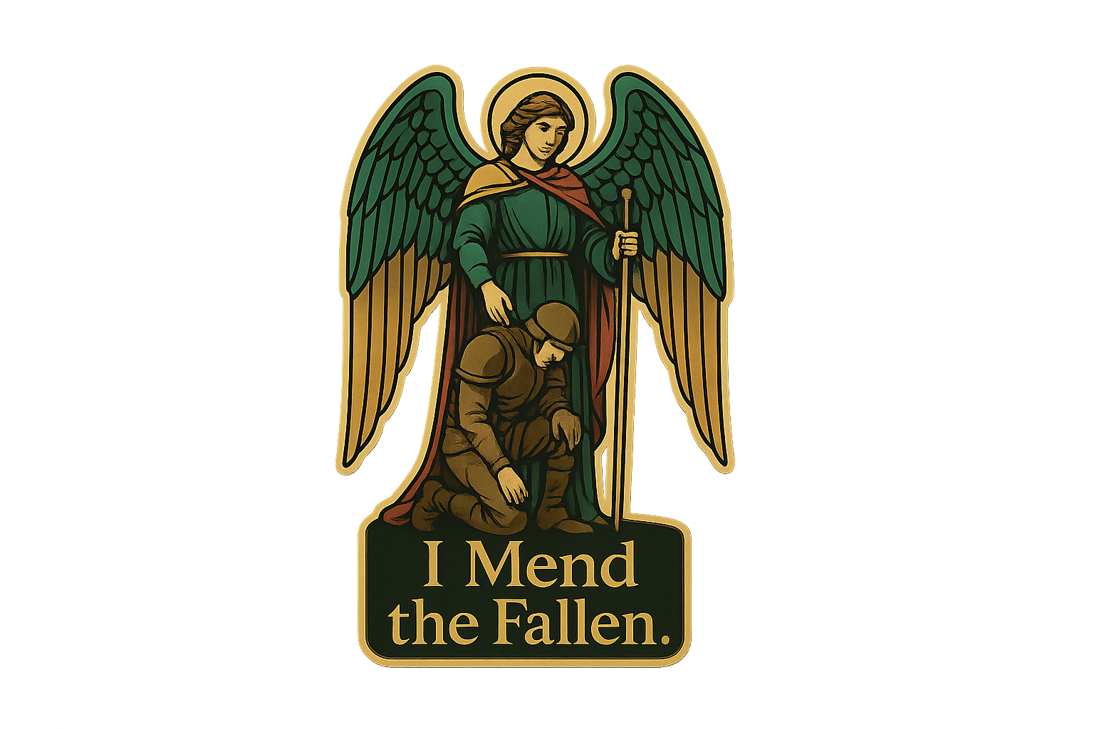 Archangel Raphael Green Gold Wings Sticker Decal I Mend the Fallen Soldier Guardian Angel Vinyl Laptop Car Window Bumper AUTO Water Bottle Helmets Truck