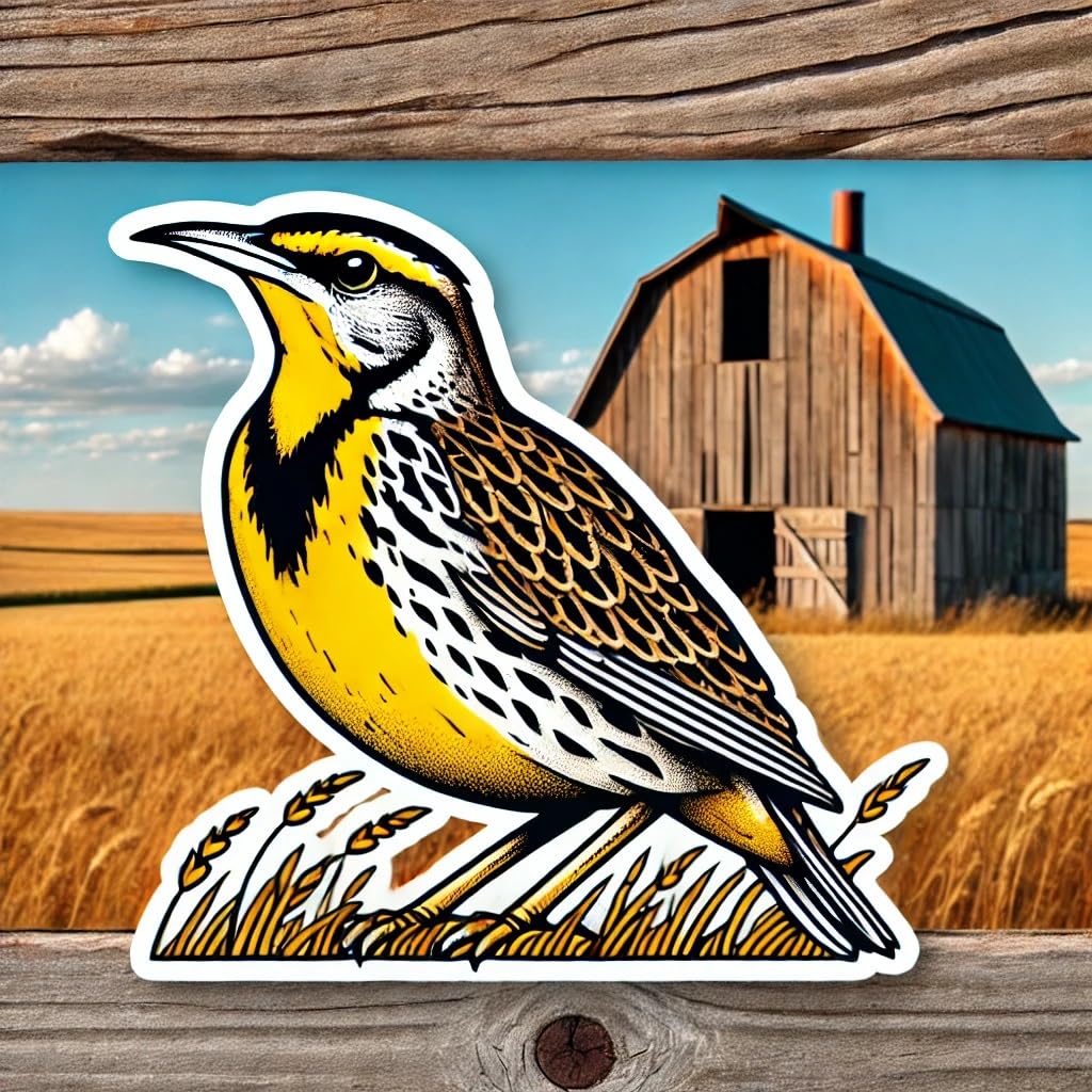 Western Meadowlark on Barn Roof Waterproof Sticker for Laptop, Wall, Car, Window, Bumper, Decal for Truck, Auto, Water Bottle – Kansas Countryside Bird Vinyl