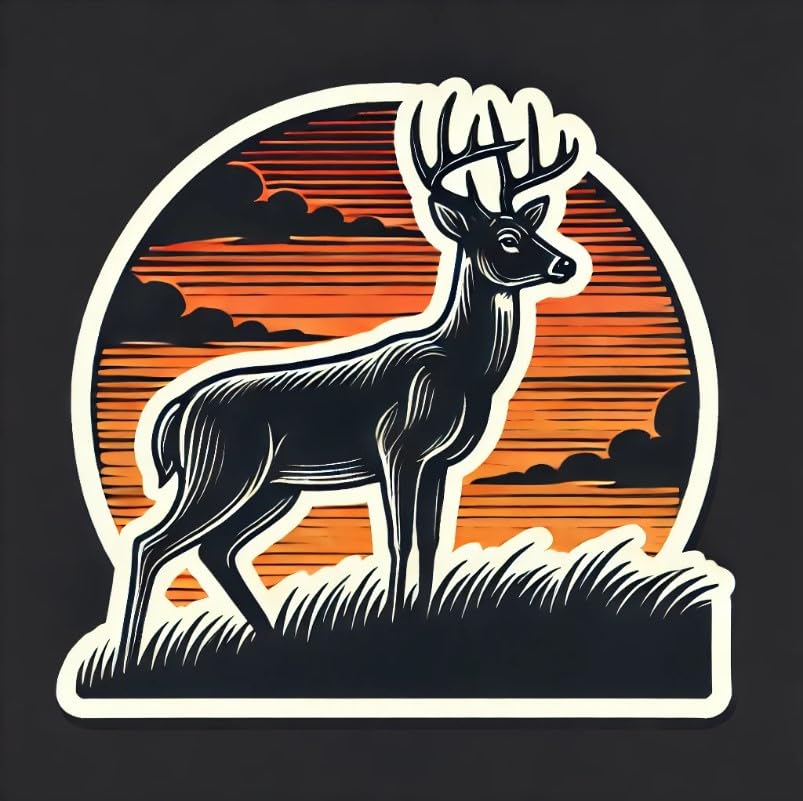 White-Tailed Deer Silhouette at Sunset – Sticker Decal for Laptop, Wall, Car, Window, Bumper, Truck, Waterproof, Auto, Water Bottle