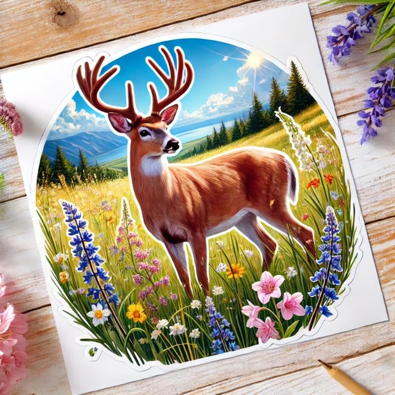White-Tailed Deer Spring Meadow Vinyl Sticker for Laptop, Wall, Car, Window, Bumper, Truck, Waterproof Auto, Water Bottle