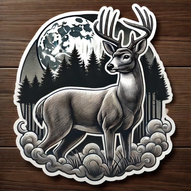 White-Tailed Deer Under Full Moon – Sticker Decal for Laptop, Wall, Car, Window, Bumper, Truck, Waterproof, Auto, Water Bottle (4)